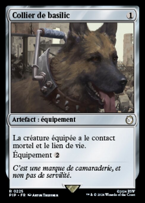|  Variations— Parts— | Collier de basilicLa créature équipée a le contact mortel et le lien de vie. Équipement