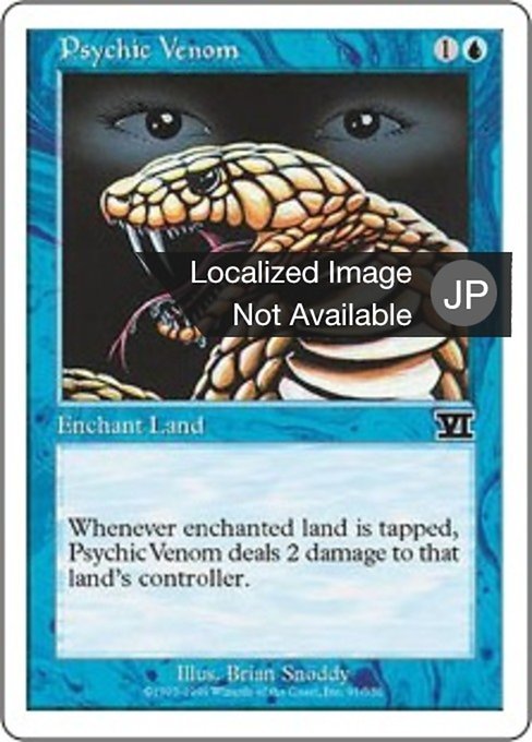 ![]() Variations— Parts— | Venin psychiqueEnchant land Whenever enchanted land becomes tapped, this Aura deals 2 damage to that land's controller.