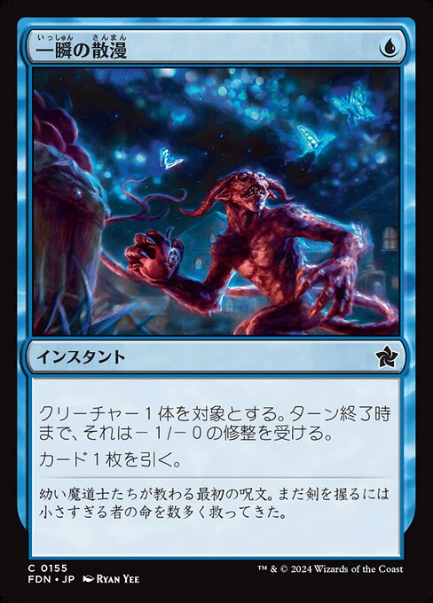|  Variations— Parts— | 一瞬の散漫クリーチャー1体を対象とする。それはターン終了時まで-1/-0の修整を受ける。 カードを1枚引く。