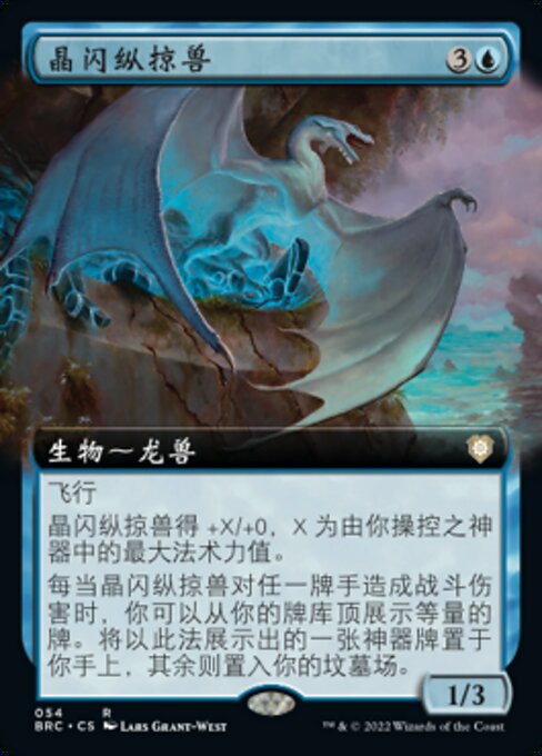 ![]() Variations : 1Parts— | Glint Raker1 / 3 Flying This creature gets +X/+0, where X is the greatest mana value among artifacts you control. Whenever this creature deals combat damage to a player, you may reveal that many cards from the top of your library. Put an artifact card revealed this way into your hand and the rest into your graveyard.
