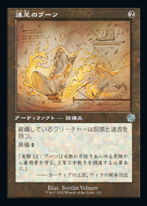 ![]() Variations : 1Parts— | 疾行靴佩带此武具的生物具有辟邪与敏捷异能。 佩带
