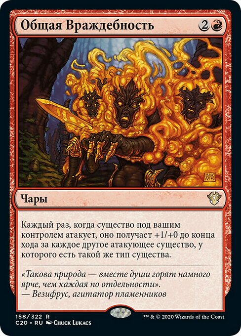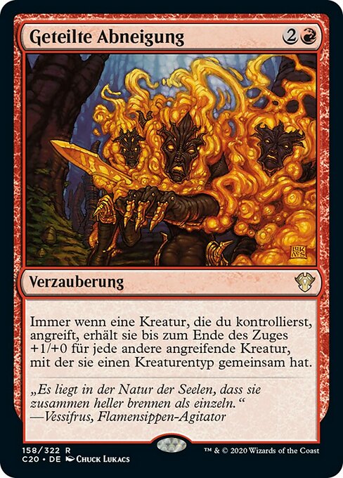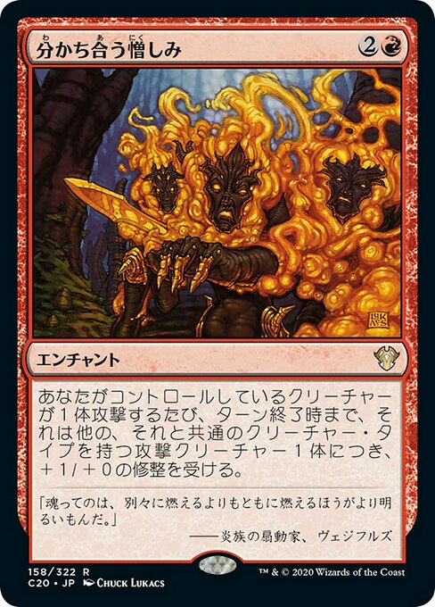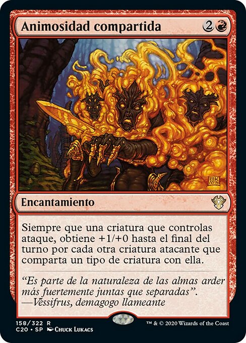 ![]() Variations— Parts— | Shared AnimosityWhenever a creature you control attacks, it gets +1/+0 until end of turn for each other attacking creature that shares a creature type with it.