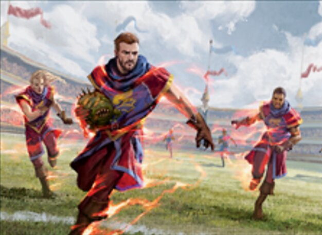 Exilez une carte d'éphémère ou de rituel ciblée de votre cimetière. Les créatures que vous contrôlez gagnent +X/+0 jusqu'à la fin du tour, X étant la valeur de mana de cette carte. À chaque fois qu'une créature que vous contrôlez inflige des blessures de combat à un joueur ce tour-ci, copiez la carte exilée. Vous pouvez lancer la copie sans payer son coût de mana.