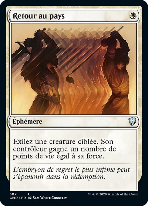 ![]() Variations— Parts— | Espadas em AradosExile a criatura alvo. O controlador da criatura ganha uma quantidade de pontos de vida igual ao poder dela.