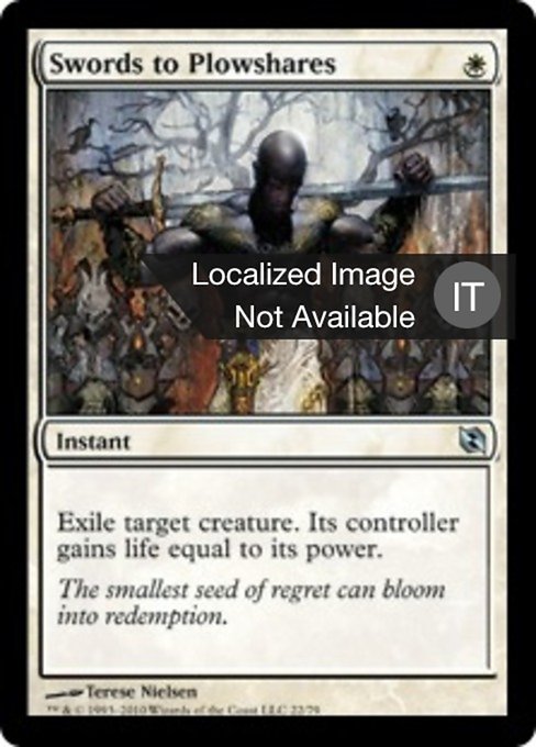 ![]() Variations— Parts— | Espadas en guadañasExilia la criatura objetivo. Su controlador gana vidas igual a su fuerza.