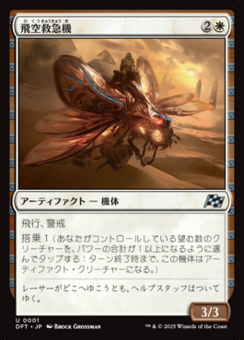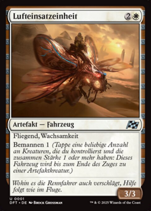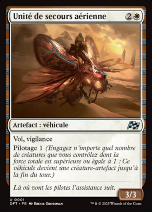 ![]() Variations : 1Parts— | Air Response Unit3 / 3 Flying, vigilance Crew 1 (Tap any number of creatures you control with total power 1 or more: This Vehicle becomes an artifact creature until end of turn.)