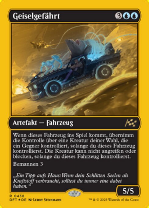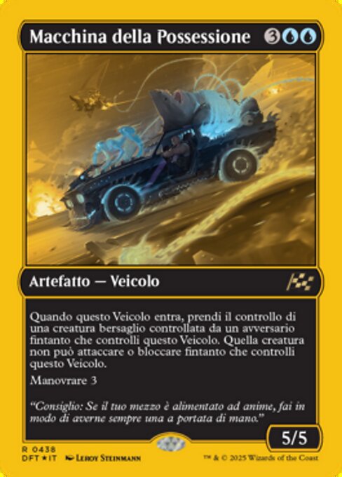 ![]() Variations : 3Parts— | Possession Engine5 / 5 When this Vehicle enters, gain control of target creature an opponent controls for as long as you control this Vehicle. That creature can't attack or block for as long as you control this Vehicle. Crew 3