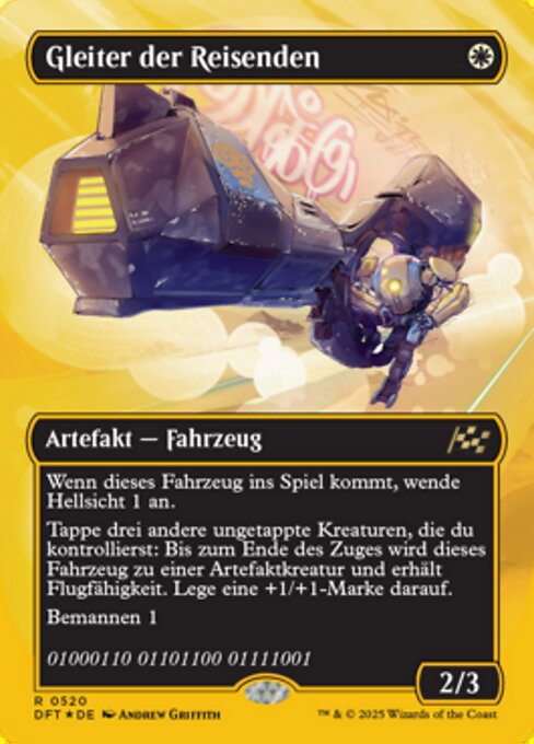 ![]() Variations : 3Parts— | Voyager Glidecar2 / 3 When this Vehicle enters, scry 1. Tap three other untapped creatures you control: Until end of turn, this Vehicle becomes an artifact creature and gains flying. Put a +1/+1 counter on it. Crew 1