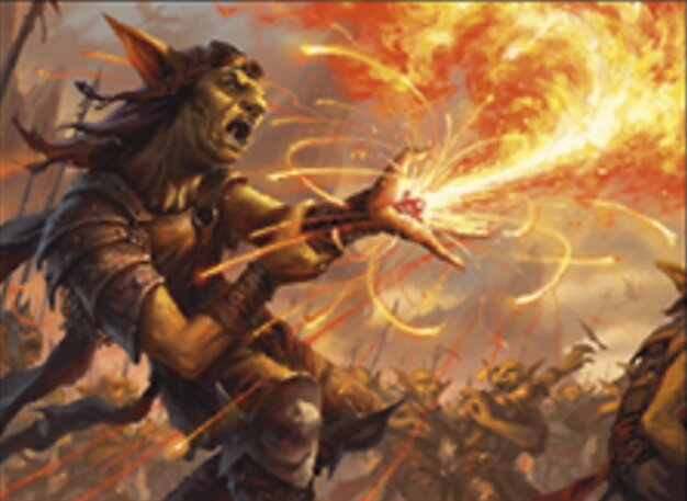 ![]() Variations : 1Parts— | Incinerador palmagema2 / 1 Ciclo Cuando actives la habilidad de ciclo del Incinerador palmagema, puedes hacer que haga X puntos de daño a la criatura objetivo, donde X es la cantidad de Trasgos en el campo de batalla.