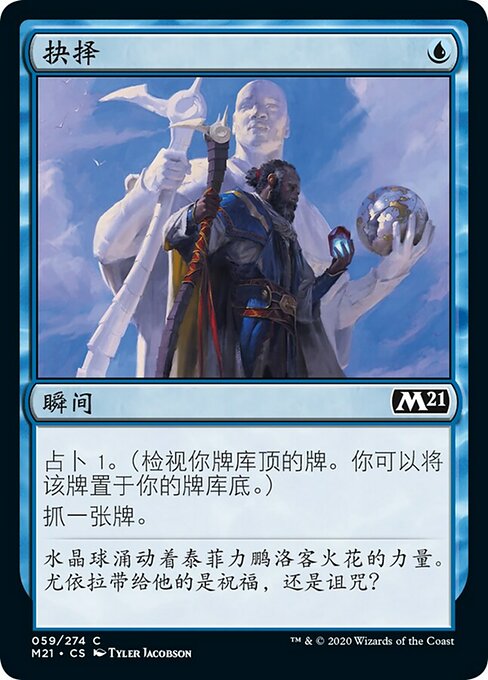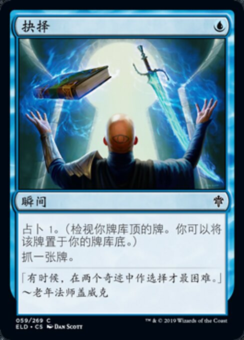 |  Variations— Parts— | 抉择占卜1。(检视你牌库顶的牌。你可以将该牌置于你的牌库底。) 抓一张牌。