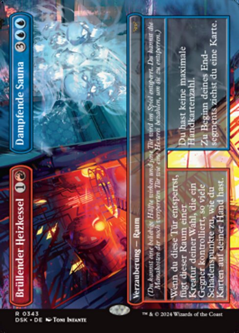 Wenn du diese Tür entsperrst, fügt dieser Raum einer Kreatur deiner Wahl, die ein Gegner kontrolliert, so viele Schadenspunkte zu, wie du Karten auf deiner Hand hast.