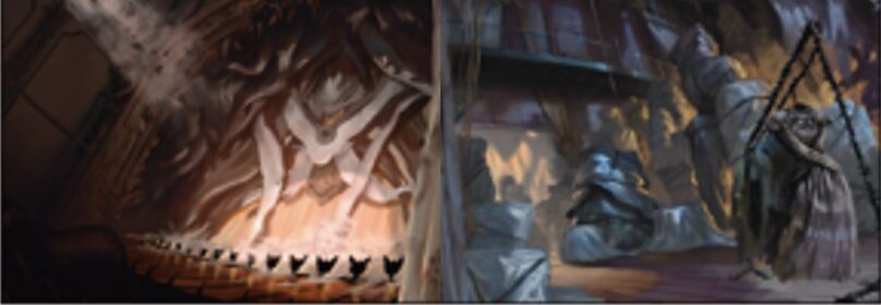 (Vous pouvez lancer la moitié de votre choix. Cet accès se déverrouille sur le champ de bataille. Au moment où vous pourriez lancer un rituel, vous pouvez payer le coût de mana d'un accès verrouillé pour le déverrouiller.)