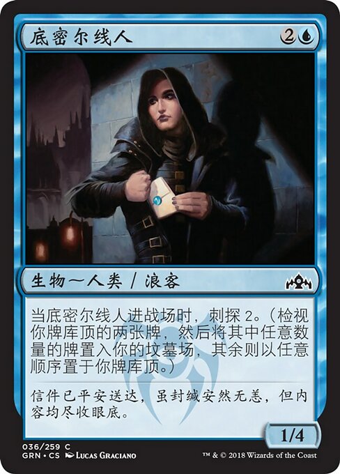 ![]() Variations— Parts— | Dimir Informant1 / 4 When this creature enters, surveil 2. (Look at the top two cards of your library, then put any number of them into your graveyard and the rest on top of your library in any order.)