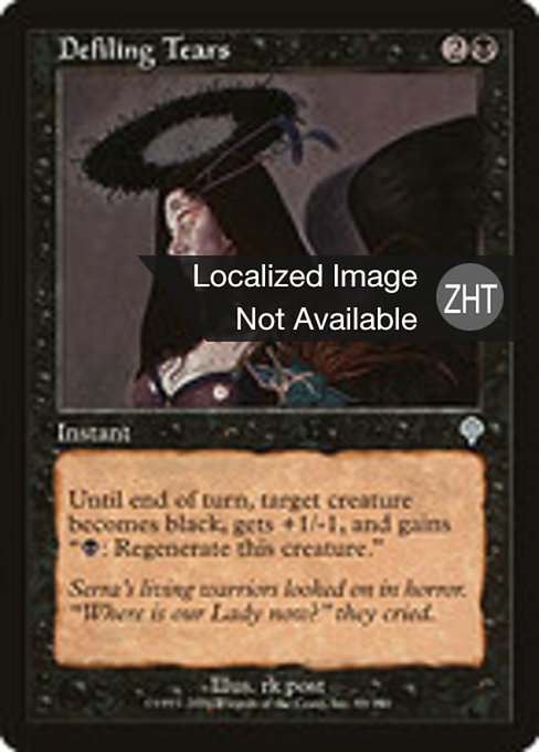 Until end of turn, target creature becomes black, gets +1/-1, and gains "