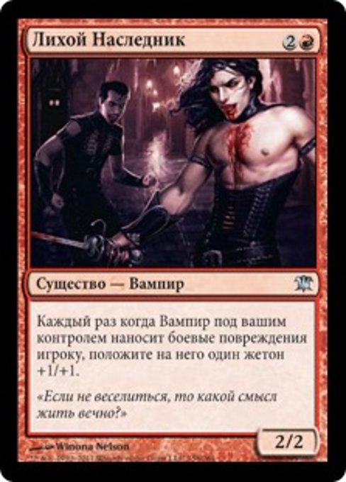 ![]() Variations— Parts— | Rakish Heir2 / 2 Whenever a Vampire you control deals combat damage to a player, put a +1/+1 counter on it.