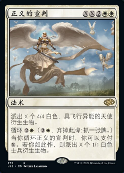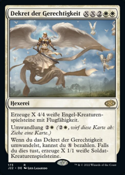 ![]() Variations— Parts— | Decreto della GiustiziaCrea X pedine creatura Angelo 4/4 bianche con volare. Ciclo Quando cicli il Decreto della Giustizia, puoi pagare