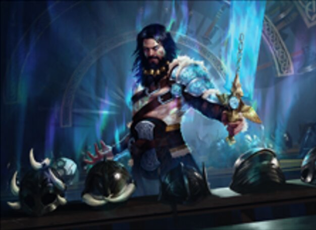 III — Passa in rassegna il tuo grimorio per una carta chiamata Halvar, Dio della Battaglia o per una carta Equipaggiamento, rivelala, aggiungila alla tua mano, poi rimescola il tuo grimorio.