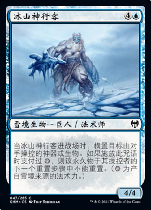 빙산 보행자가 전장에 들어올 때, 상대가 조종하는 마법물체 또는 생물을 목표로 정한다. 그 목표를 탭한다. 이 주문을 발동하는 데