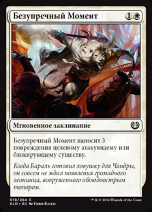 ![]() Variations— Parts— | 絶妙なタイミング攻撃クリーチャー1体かブロック・クリーチャー1体を対象とする。絶妙なタイミングはそれに3点のダメージを与える。