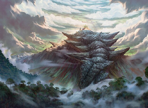 : Les Crêtes tourmentées deviennent une créature 3/4 rouge et verte Dinosaure jusqu'à la fin du tour. C'est toujours un terrain.