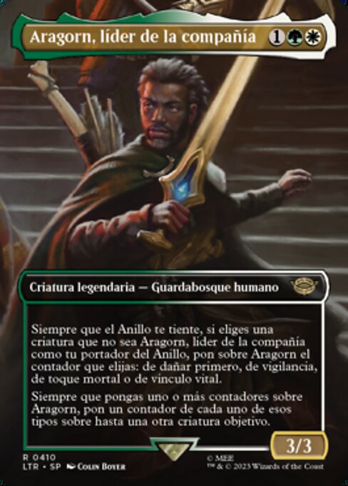 Siempre que pongas uno o más contadores sobre Aragorn, pon un contador de cada uno de esos tipos sobre hasta una otra criatura objetivo.