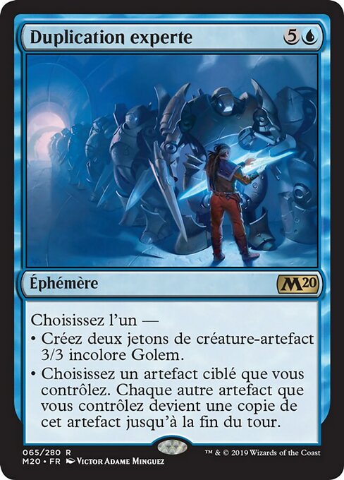 ![]() Variations— Parts— | Replicación expertaElige uno: • Crea dos fichas de criatura artefacto Gólem incoloras 3/3. • Elige un artefacto objetivo que controlas. Cada otro artefacto que controlas se convierte en una copia de ese artefacto hasta el final del turno.