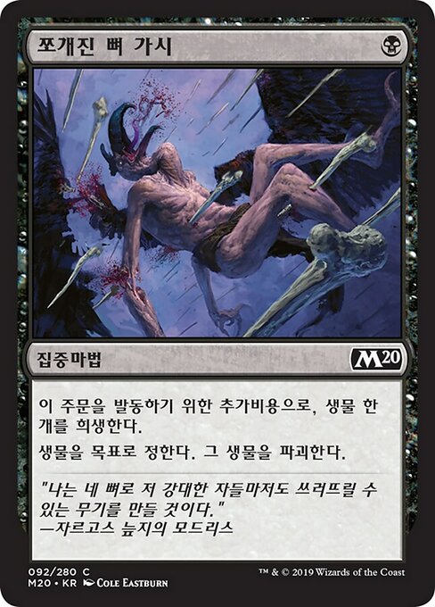 ![]() Variations— Parts— | 骨の粉砕この呪文を唱えるための追加コストとして、クリーチャー1体を生け贄に捧げる。 クリーチャー1体を対象とし、それを破壊する。