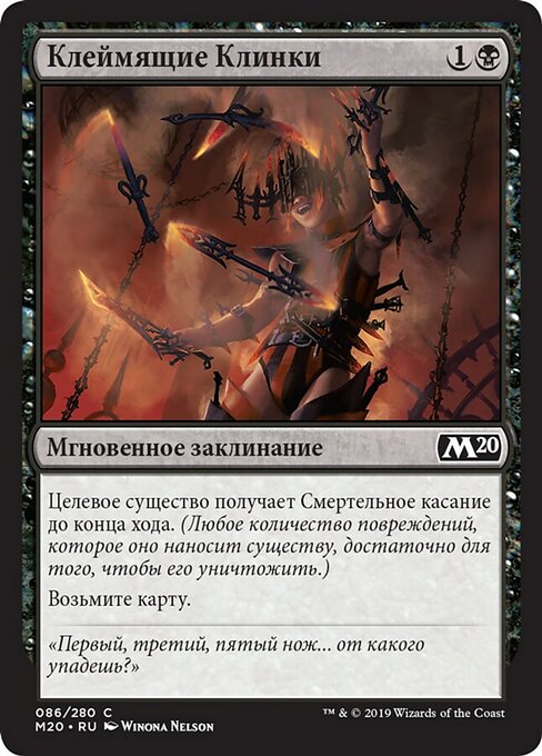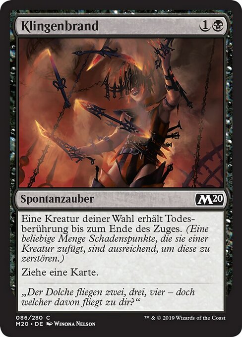 ![]() Variations— Parts— | Lâmina CauterizanteA criatura alvo ganha toque mortífero até o final do turno. (Qualquer quantidade de dano que ela cause a uma criatura é suficiente para destruí-la.) Compre um card.