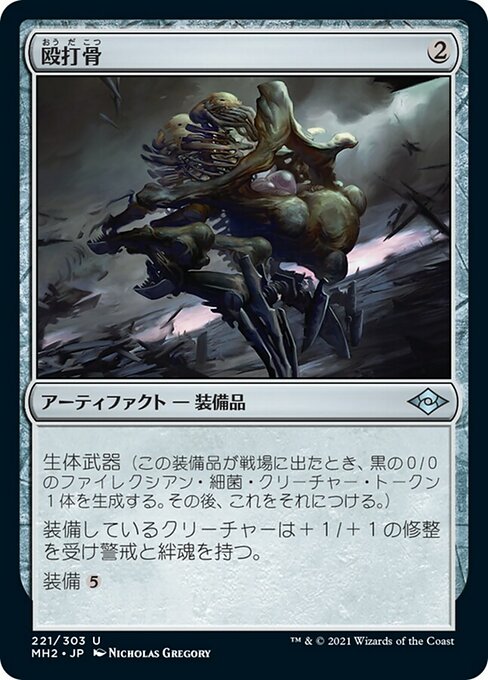 Arme vivante (Quand cet équipement arrive sur le champ de bataille, créez un jeton de créature 0/0 noire Phyrexian et Germe, puis attachez-lui cet équipement.)