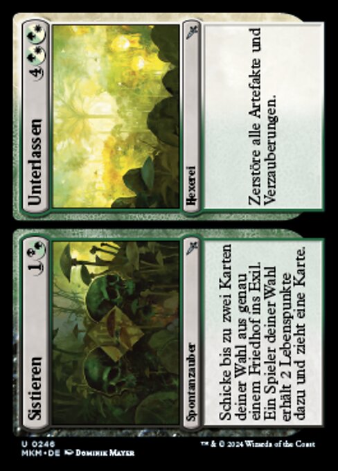 Schicke bis zu zwei Karten deiner Wahl aus genau einem Friedhof ins Exil. Ein Spieler deiner Wahl erhält 2 Lebenspunkte dazu und zieht eine Karte.