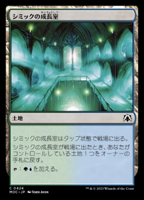 ![]() Variations— Parts— | Simic-WachstumskammerDie Simic-Wachstumskammer kommt getappt ins Spiel. Wenn die Simic-Wachstumskammer ins Spiel kommt, bringe ein Land, das du kontrollierst, auf die Hand seines Besitzers zurück.