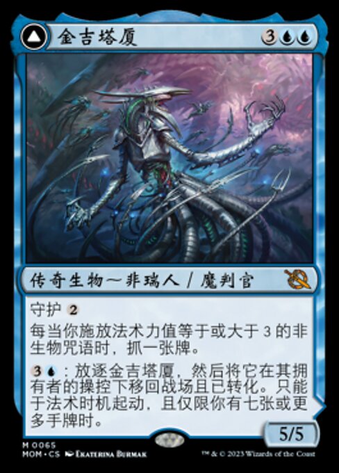 :放逐金吉塔厦,然后将它在其拥有者的操控下移回战场且已转化。只能于法术时机起动,且仅限你有七张或更多手牌时。