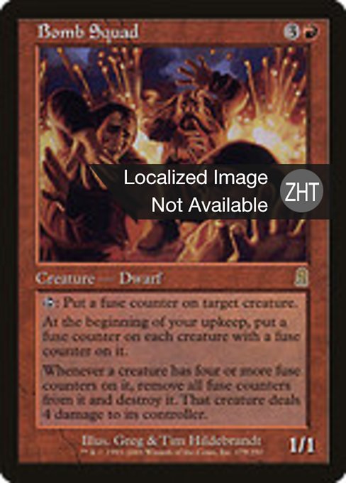 If there are two Bomb Squads on the battlefield when a creature ends up with 4 or more fuse counters, both Bomb Squad abilities will trigger causing 4 damage each even though the first to resolve will destroy the creature.