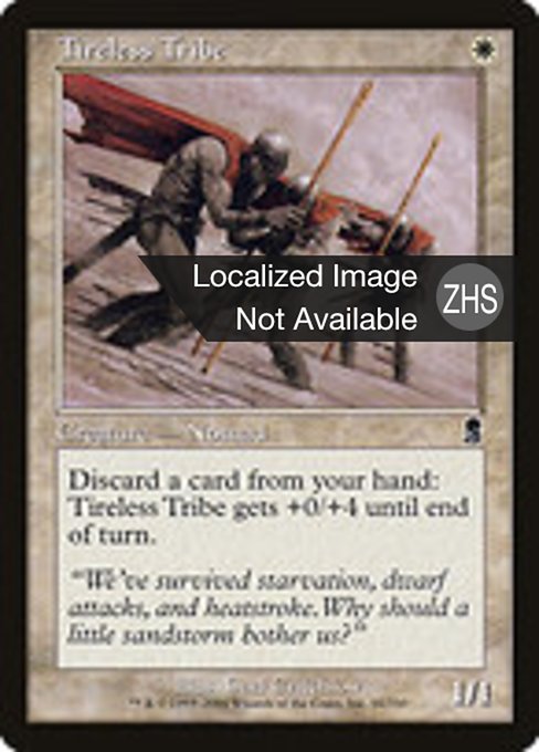 Défaussez-vous d'une carte de votre main : La Tribu infatigable gagne +0/+4 jusqu'à la fin du tour.