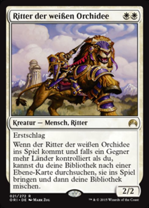 LegalitiesLegal Duel Brawl Penny Predh Legacy Modern Pioneer Vintage Historic Timeless Commander Gladiator Oathbreaker Not Legal Future Pauper Alchemy Standard Oldschool Premodern Standardbrawl Paupercommander RulingsKnight of the White Orchid's triggered ability has an “intervening ‘if' clause.” That means (1) the ability won't trigger at all unless any one of your opponents controls more lands than you, and (2) the ability will do nothing if you control at least as many lands as each of your opponents by the time it resolves.