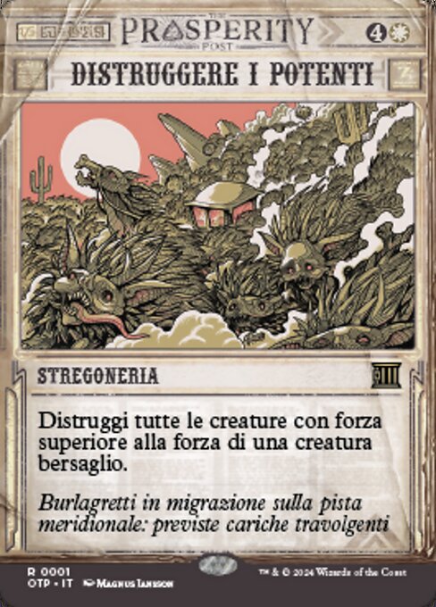![]() Variations— Parts— | 以弱制强消灭所有力量大于目标生物的生物。