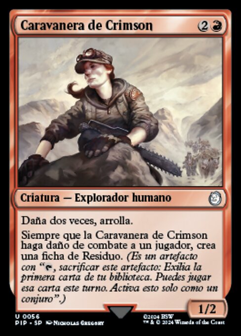 Immer wenn das Mitglied der Karminroten Karawane einem Spieler Kampfschaden zufügt, erzeuge einen Altmetall-Spielstein. (Er ist ein Artefakt mit „