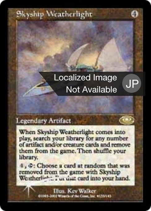 When Skyship Weatherlight enters, search your library for any number of artifact and/or creature cards, exile them, then shuffle.