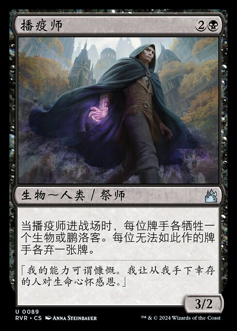 ![]() Variations— Parts— | Plaguecrafter3 / 2 When this creature enters, each player sacrifices a creature or planeswalker of their choice. Each player who can't discards a card.
