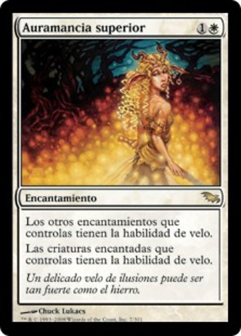|  Variations— Parts— | Auramancia superiorLos otros encantamientos que controlas tienen la habilidad de velo. Las criaturas encantadas que controlas tienen la habilidad de velo.