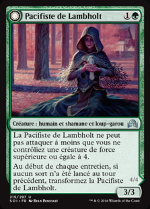 La Pacifiste de Lambholt ne peut pas attaquer à moins que vous ne contrôliez une créature de force supérieure ou égale à 4.
