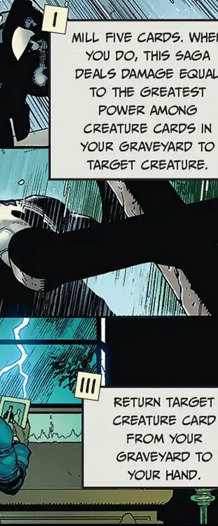 ![]() Variations : 1Parts— | Kraven's Last Hunt(As this Saga enters and after your draw step, add a lore counter. Sacrifice after III.) I — Mill five cards. When you do, this Saga deals damage equal to the greatest power among creature cards in your graveyard to target creature. II — Target creature you control gets +2/+2 until end of turn. III — Return target creature card from your graveyard to your hand.