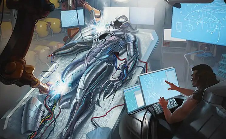 ![]() Variations : 1Parts— | Biorganic CarapaceWhen this Equipment enters, attach it to target creature you control. Equipped creature gets +2/+2 and has "Whenever this creature deals combat damage to a player, draw a card for each modified creature you control." (Equipment, Auras you control, and counters are modifications.) Equip