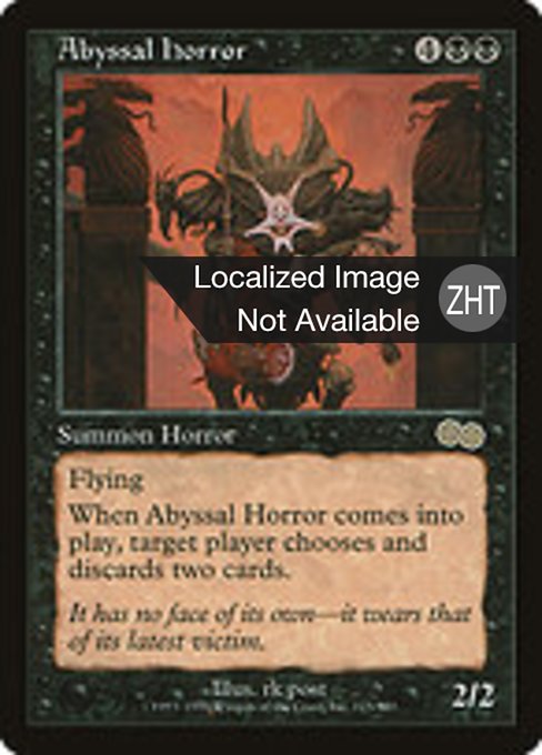 ![]() Variations— Parts— | Abyssal Horror2 / 2 Flying When this creature enters, target player discards two cards.