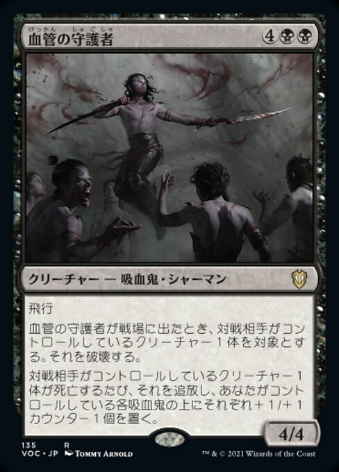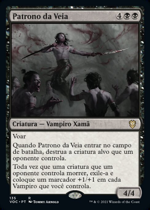 ![]() Variations— Parts— | Patron of the Vein4 / 4 Flying When this creature enters, destroy target creature an opponent controls. Whenever a creature an opponent controls dies, exile it and put a +1/+1 counter on each Vampire you control.