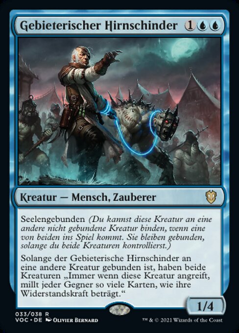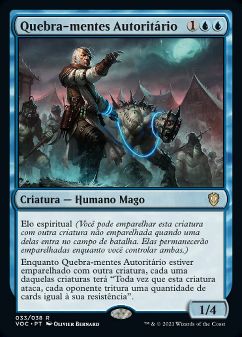 Fintanto che lo Spezzamenti Autoritario è abbinato a un'altra creatura, ognuna di quelle creature ha "Ogniqualvolta questa creatura attacca, ogni avversario macina un numero di carte pari alla sua costituzione".