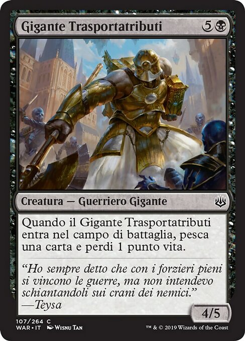 ![]() Variations— Parts— | Tithebearer Giant4 / 5 When this creature enters, you draw a card and you lose 1 life.