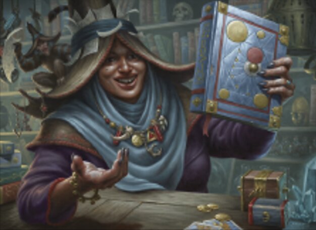 You don't choose a target for Spellbook Vendor's ability at the time it triggers. Rather, a second "reflexive" ability triggers when you pay