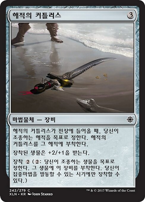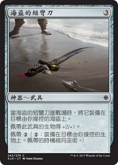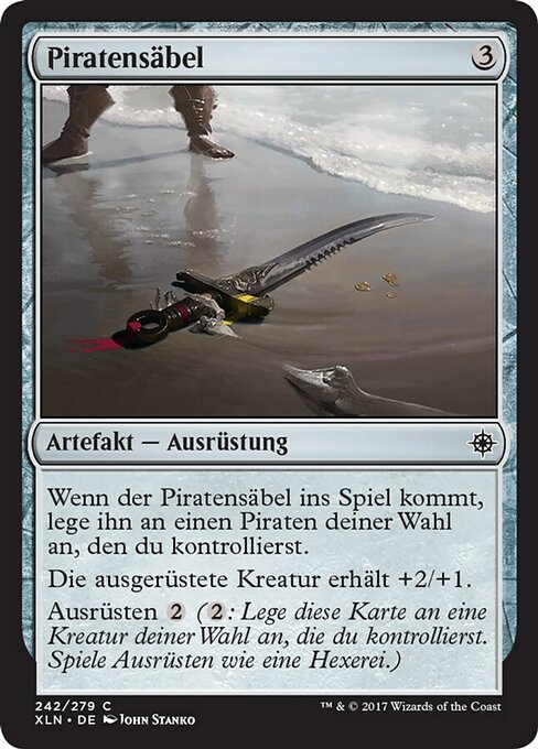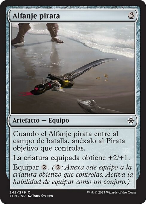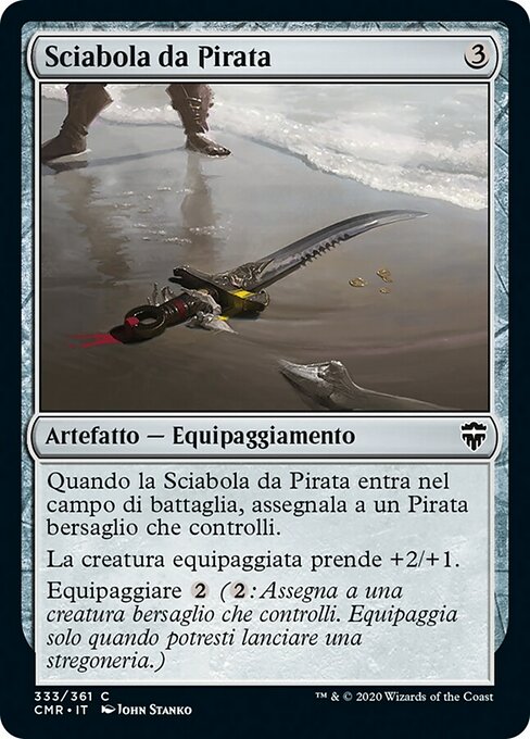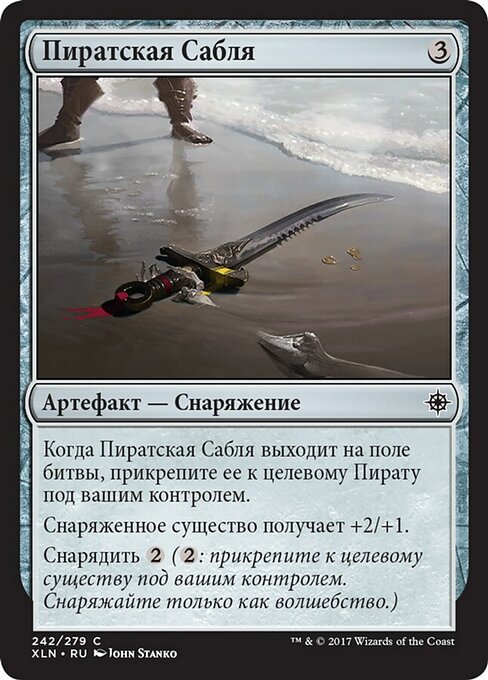 |  Variations— Parts— | Sciabola da PirataQuando la Sciabola da Pirata entra nel campo di battaglia, assegnala a un Pirata bersaglio che controlli. La creatura equipaggiata prende +2/+1. Equipaggiare