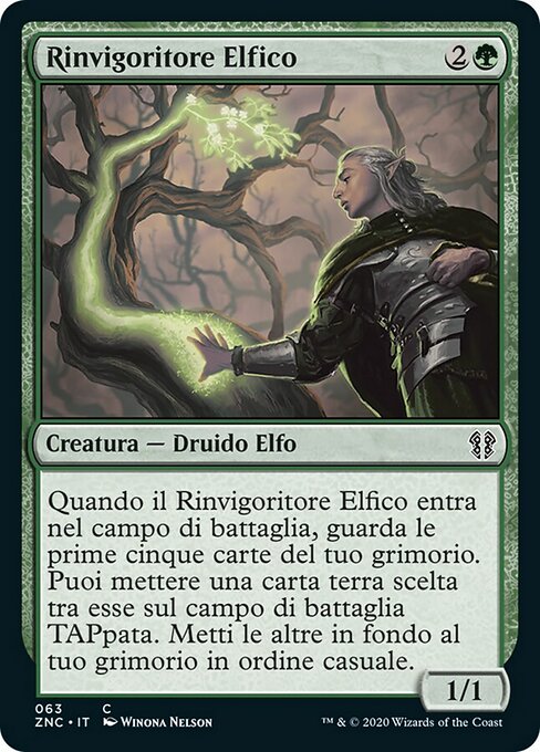 ![]() Variations— Parts— | Elfischer Verjüngerer1 / 1 Wenn der Elfische Verjüngerer ins Spiel kommt, schaue dir die obersten fünf Karten deiner Bibliothek an. Du kannst davon eine Länderkarte getappt ins Spiel bringen. Lege den Rest in zufälliger Reihenfolge unter deine Bibliothek.